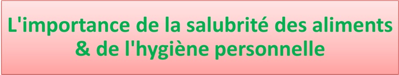 Par conséquent, les élèves apprendront l'importance de l'hygiène personnelle (lavage des mains, port de gants, soins des plaies, manipulation des aliments à mains nues, etc.), la salubrité alimentaire, la réglementation en vigueur, ainsi que la manière d'identifier les mauvaises pratiques d'hygiène.